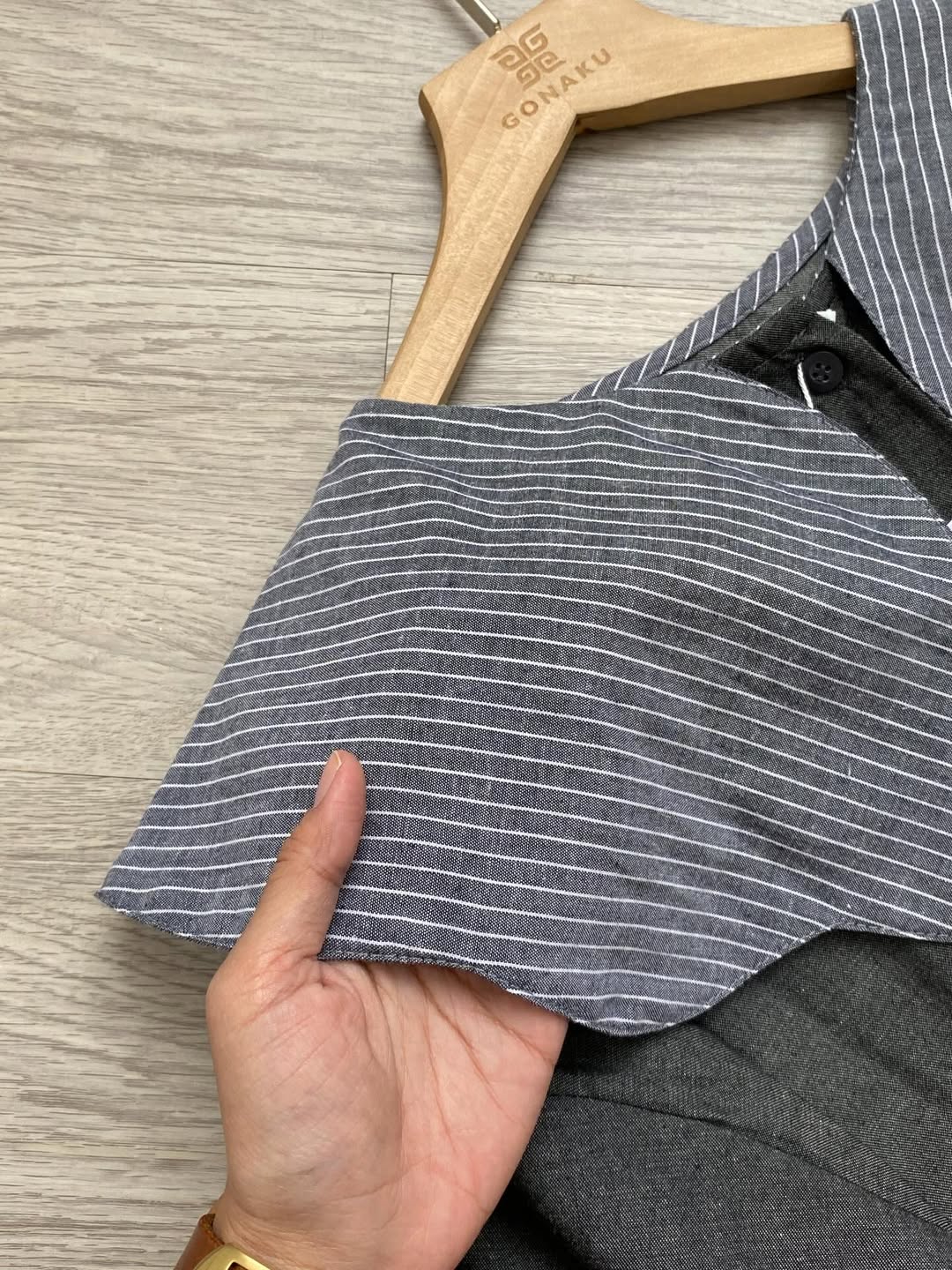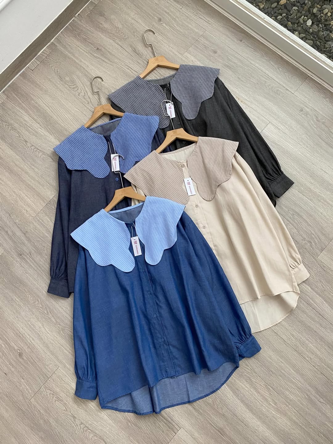 Designed with a unique pinstripe collar, this tunic adds a touch of elegance and modern charm to your look.